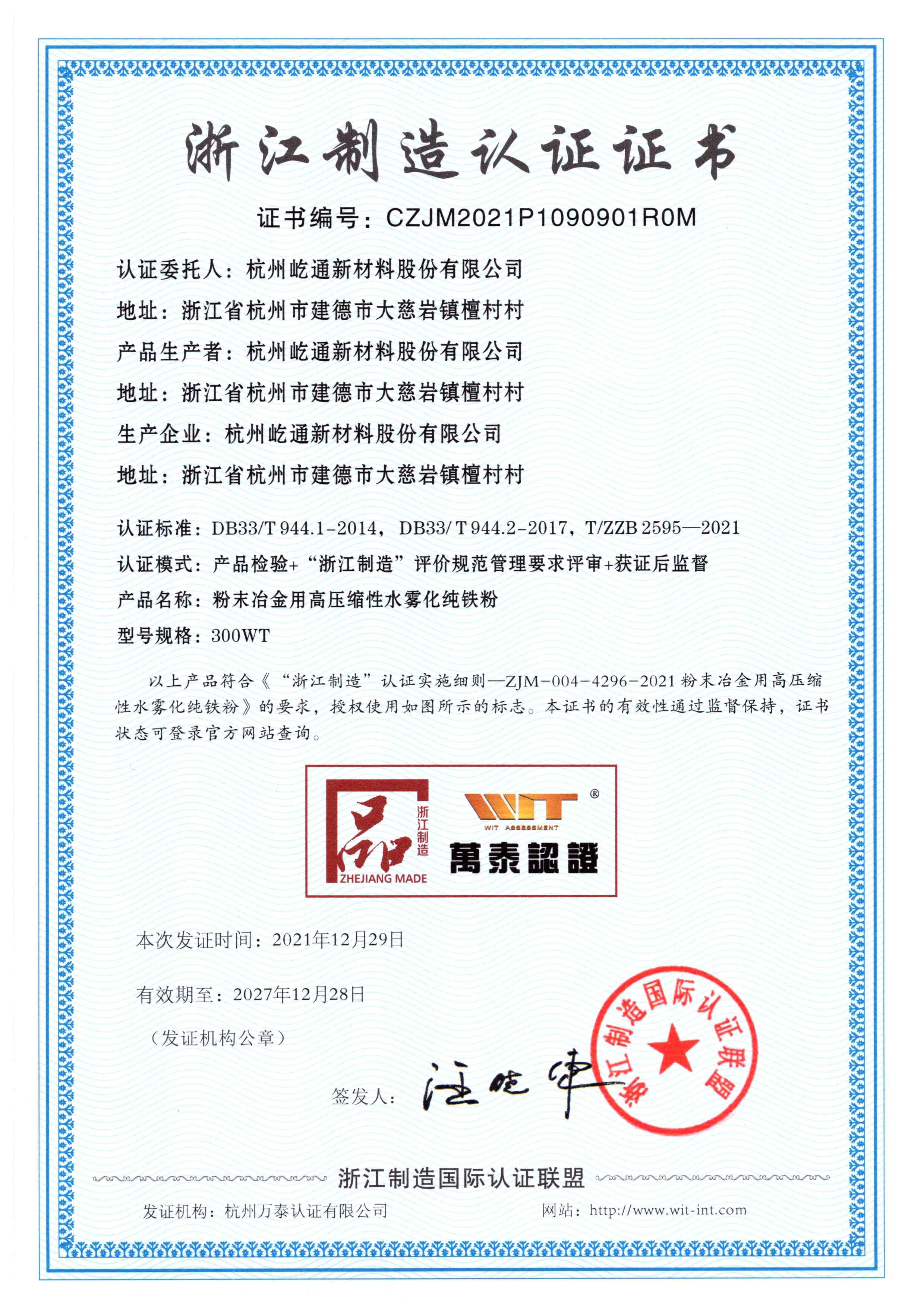 杭州屹通新材料股份有限公司,成立于2000年7月,于2021年1月21日在深圳證券交易所成功掛牌上市(股票代碼:300930)。公司是一家以高品質鐵基粉體為核心業務的高新技術企業,以現有鐵基粉體產品為基礎,不斷提升產品質量,擴大產品種類,從而更好的滿足客戶需求,努力成為全球金屬粉體行業的領先者。