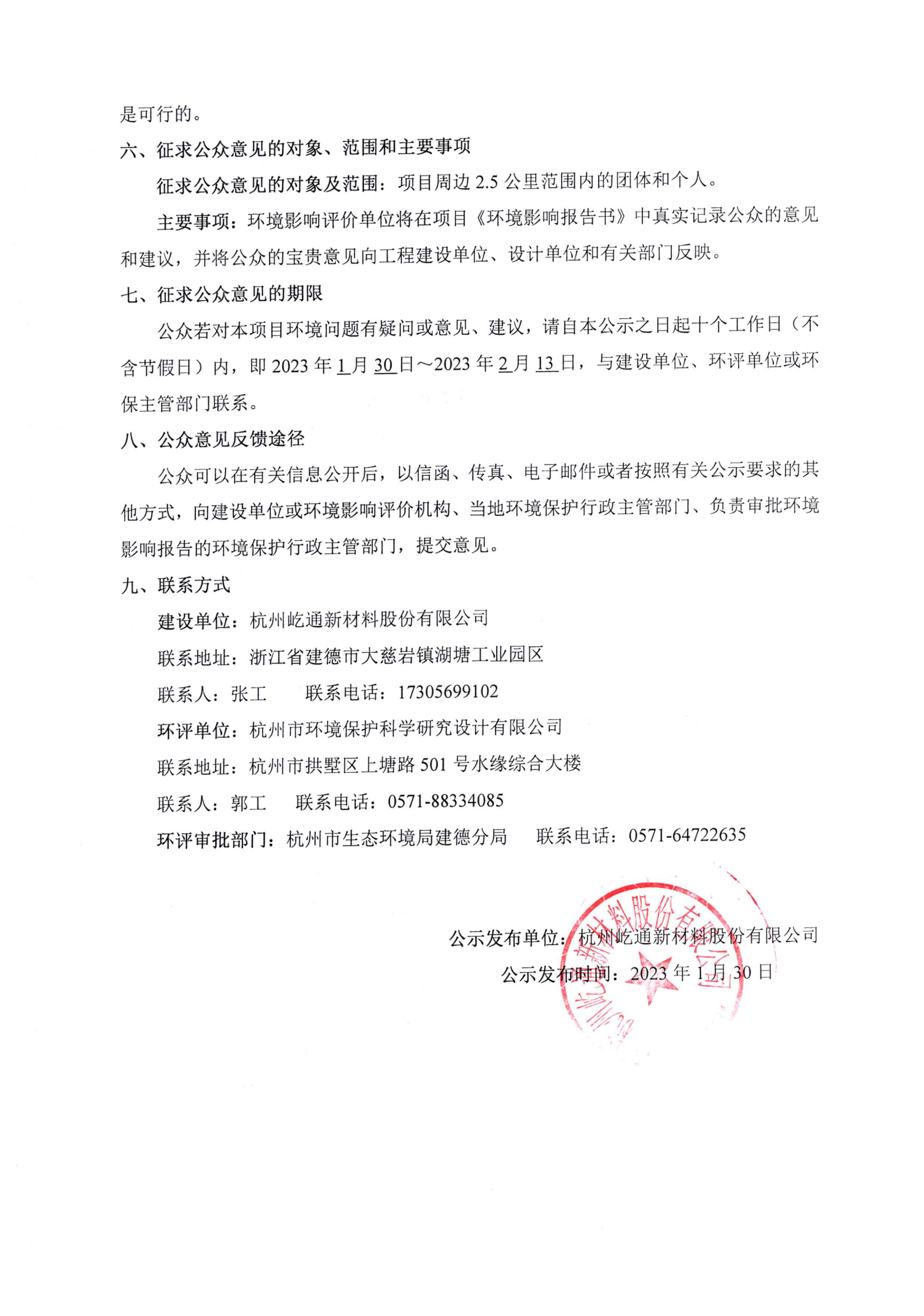 杭州屹通新材料股份有限公司年產2萬噸新能源用金屬軟磁粉體項目環境影響評價信息公示2023/1/30閱讀數:8315