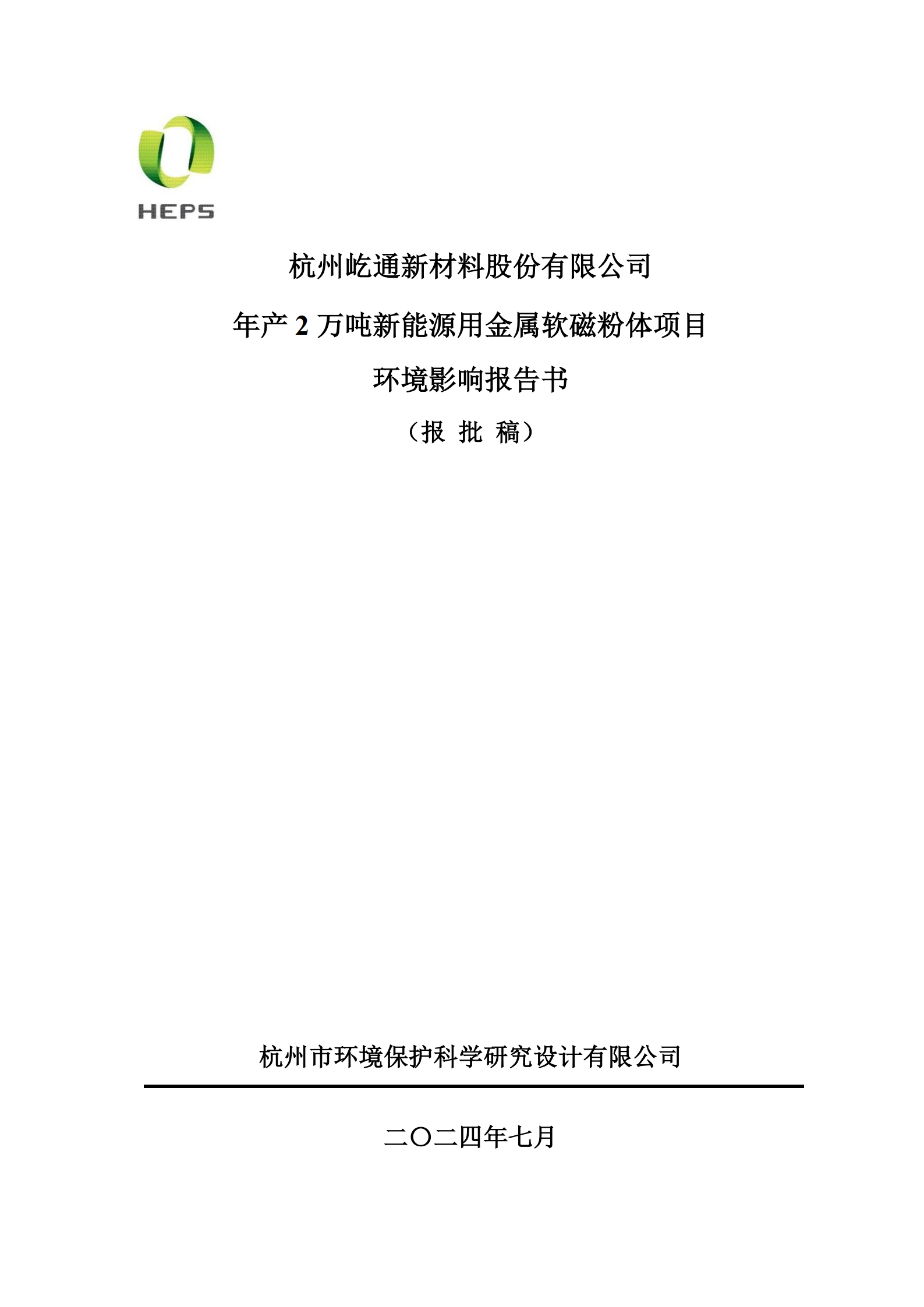 杭州屹通新材料股份有限公司年產2萬噸新能源用金屬軟磁粉體項目環境影響報告書2024/7/29閱讀數:5495